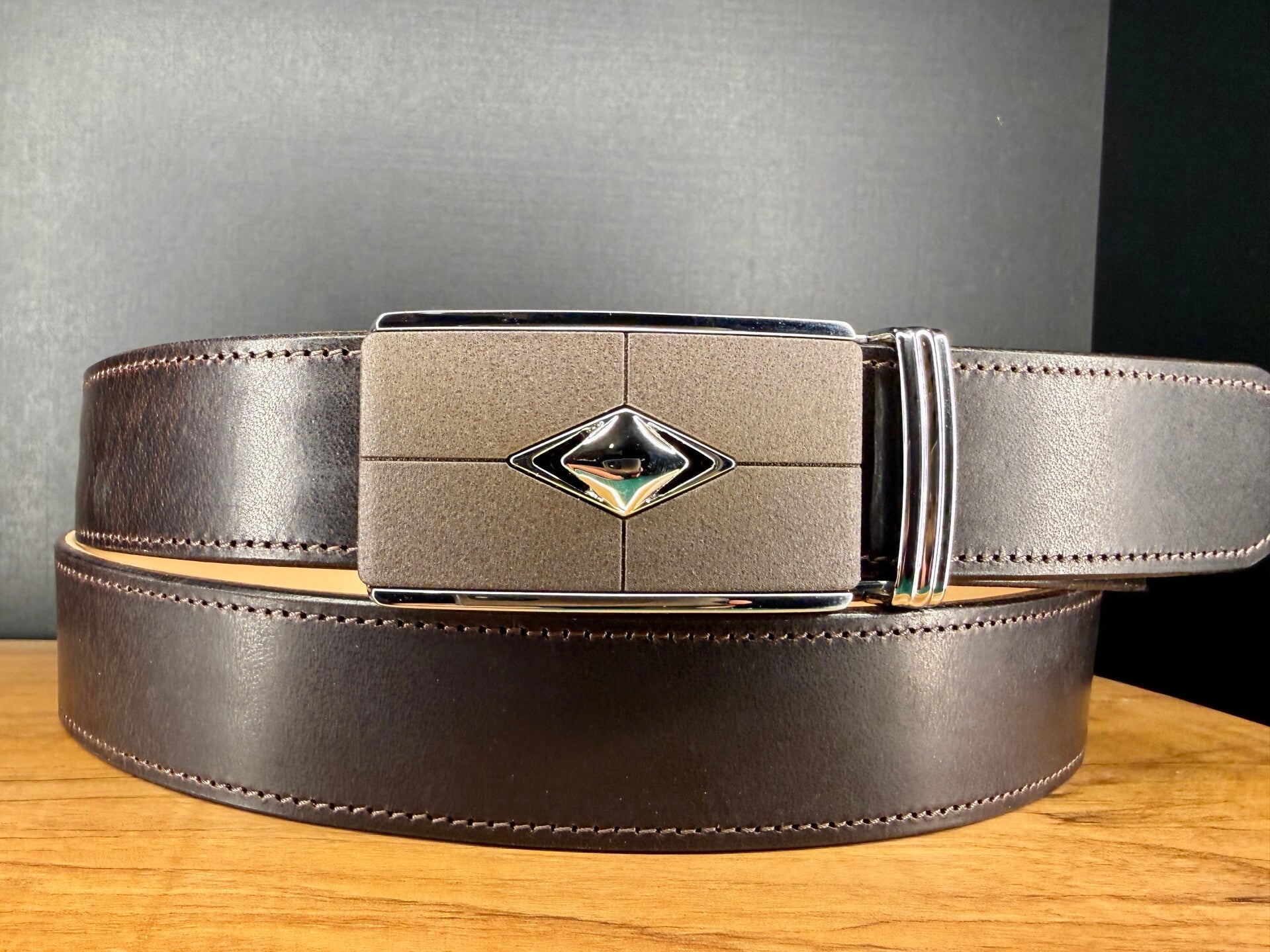 Premium Ledergürtel mit Rasterschließe – Handgefertigt in Deutschland | Dunkelbraun